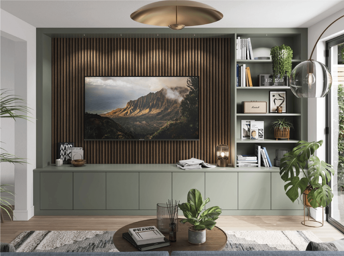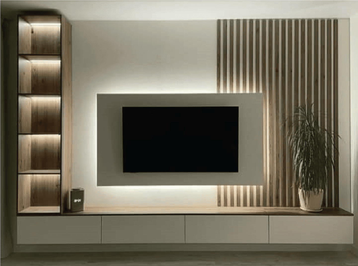 Statement media walls designed to be both functional and visually striking.